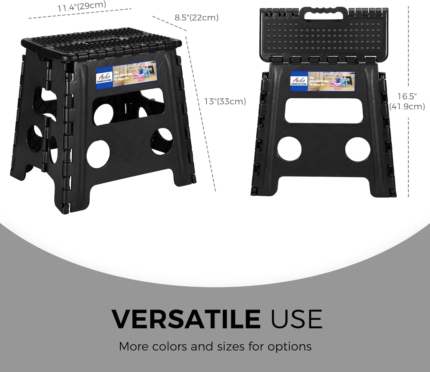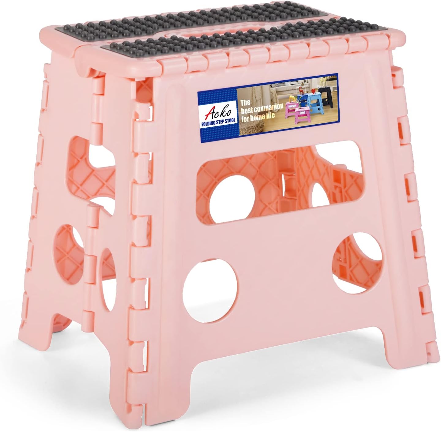 - 【2022 Safe Upgrade Step Stool】: ACSTEP folding stool 2021 Upgrade designed a safety stop gap feature that allows the foldable stool to prevent being squashed,And unique embossing design provides comfortable to sit sn and Non-Slip