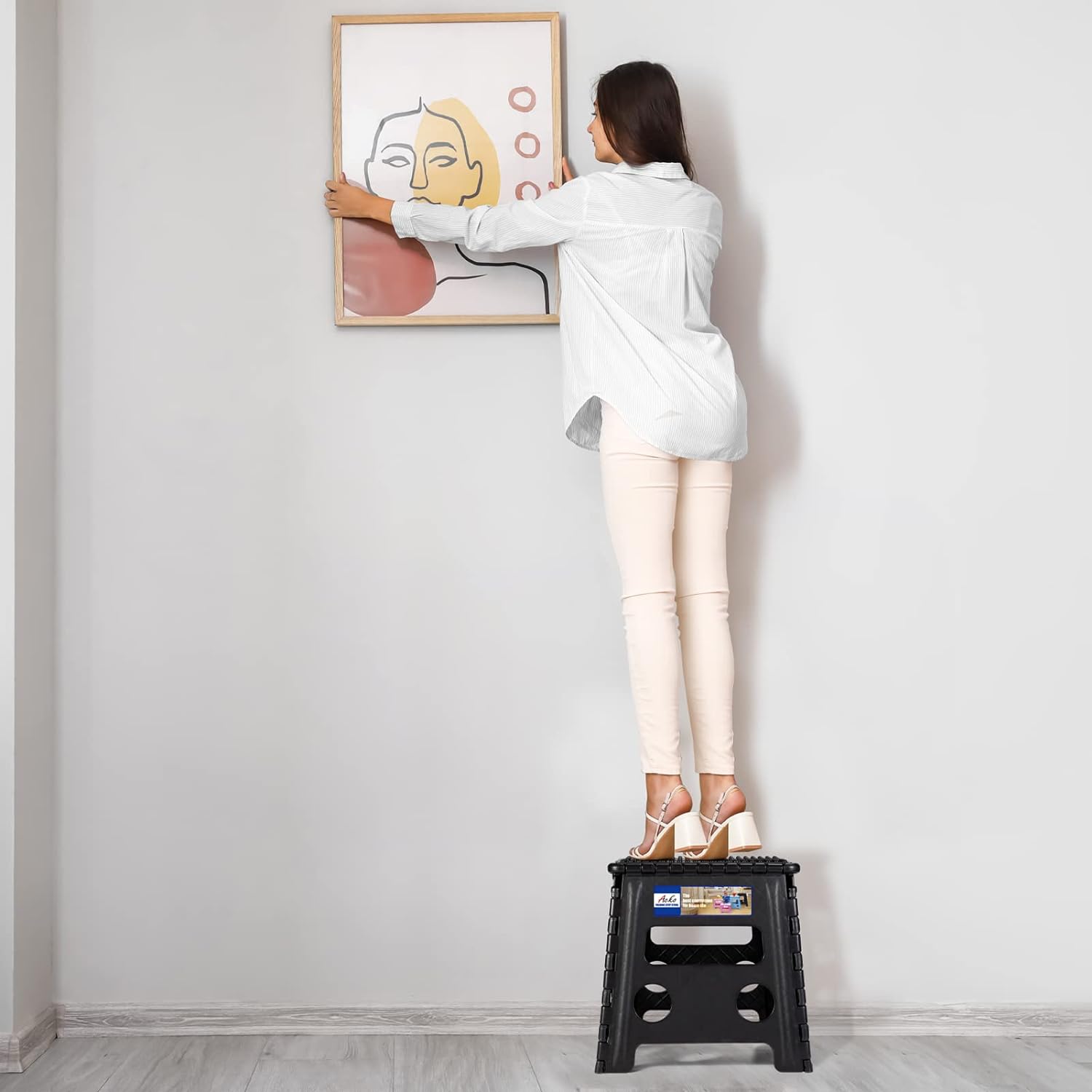 - 【Foldable Step Stool Widely Use】:The beauty of folding stool is, it can be used for multi purposes. Being a portable, it is suitable for classroom,bathroom,kitchen,camping, repair, fishing, line up, paint, garden, office, travel, outdoor and more.