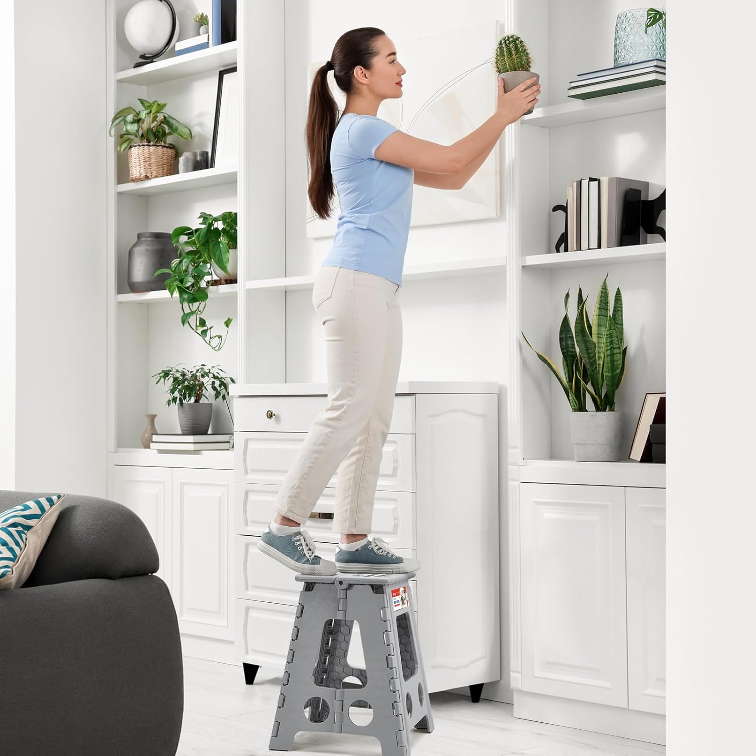 • PREMIUM QUALITY - Manufactured to highest standards, made of tough & Sustained heavy duty plastic for long lasting durability. Our folding step stool has been approved by EN 14183 Certificate, all products are qualified factory test.